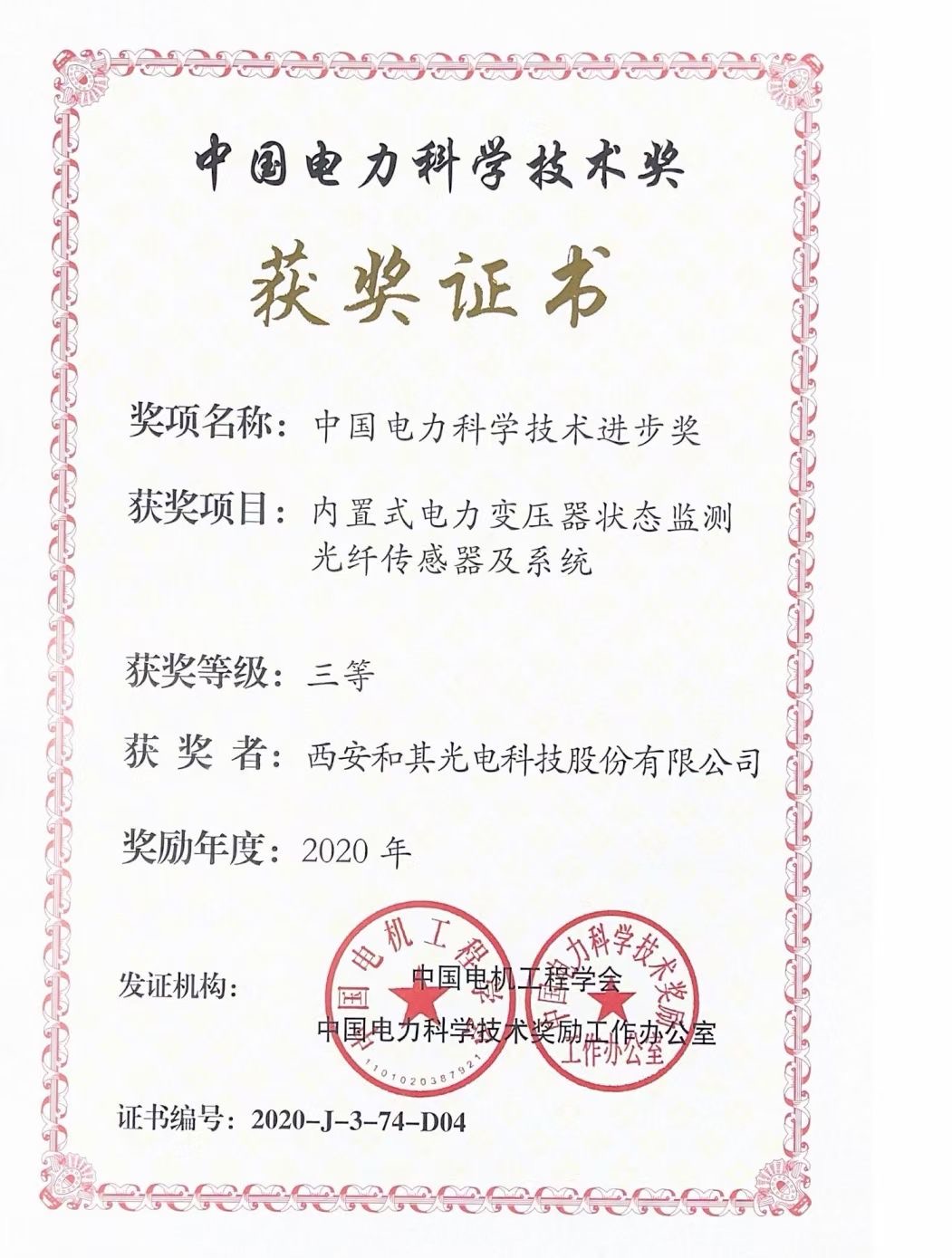 4月1日,和其光電喜獲中國電力科學(xué)技術(shù)獎(jiǎng)證書?,F(xiàn)在的省部級和國家大獎(jiǎng),不僅需要學(xué)術(shù)水平高、創(chuàng)新能力強(qiáng),不僅需要很多的論文、專利,還需要和實(shí)際應(yīng)用相結(jié)合,能產(chǎn)生很好的經(jīng)濟(jì)效益和社會(huì)價(jià)值。